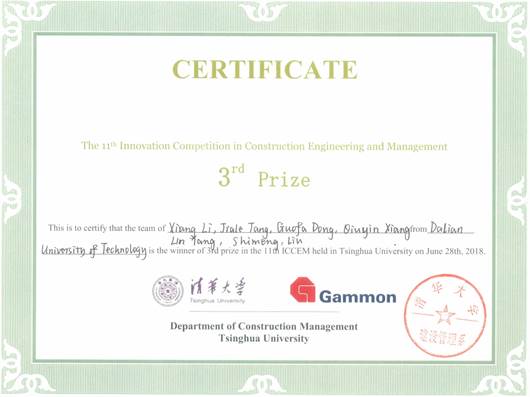 “建设工程与管理创新竞赛”是国内建设管理领域最高水平的研究型赛事。竞赛全程用英文进行,2007年举办第一届,每届比赛决出1个一等奖、2个二等奖、3个三等奖和6个优胜奖。本竞赛从第五届开始面向全球高校征集作品,并得到了国内外众多高校的积极响应和参与,成功地扩展为国际性赛事。