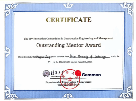2024628日,第十六届“建设工程与管理创新竞赛”全球决赛在清华大学新水利馆成功举办。由张明媛老师指导,课题组成员于良成、朱芷菡、石琦煜、陈婕、刘思妍的参赛作品《Data-driven Risk Evolution Analysis of Gas Leakage in Human-centric Communities”》荣获三等奖,张明媛老师同获“优秀指导教师”。